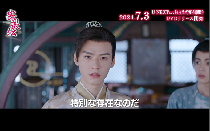 「プラチナの恋人たち」ディリラバ&「山河令」ゴン・ジュン、眼福カップル初共演の「安楽伝」が U-NEXT にて独占先行配信中&DVD-SET1~2&レンタルVol.1~12 が好評リリース中!この度、本作の配信開始と DVD リリースを記念して、スペシャル PV④「韓燁(かんよう/ゴン・ジュン)の一途な想い」が公開された。