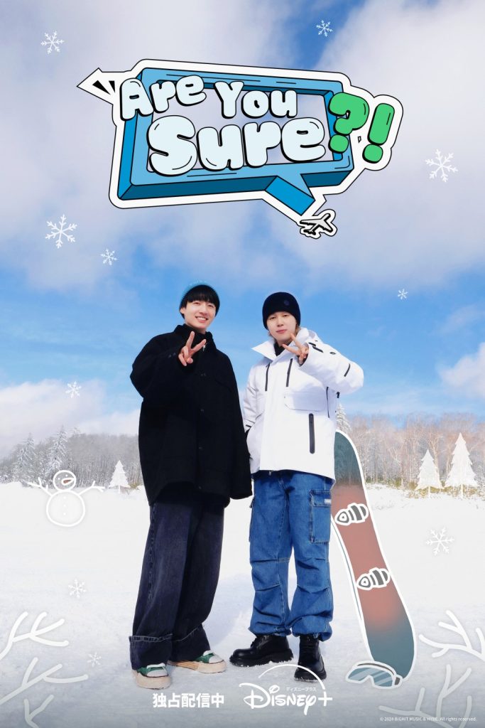 ウォルト・ディズニー・ジャパン株式会社は、ディズニー公式動画配信サービス「Disney+ (ディズニープラス)」にて、“BTS ユニット初”となるトラベルバラエティ『Are You Sure?!』を独占配信中。(全 8 話/毎週木曜日 1 話ずつ)明日9月5日(木)の第6話の配信より、再びJIMINとJUNG KOOK の2人になった彼らの次の旅先は、いよいよ日本の札幌へ!第6話配信を前に、札幌編のポスタービジュアル2種&特別メッセージ映像が到着した。