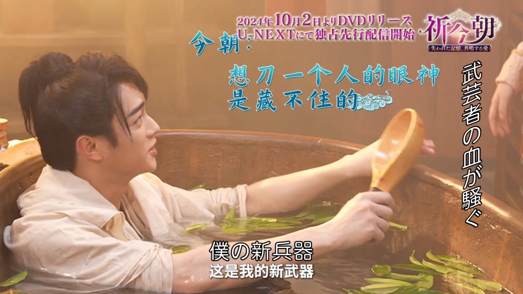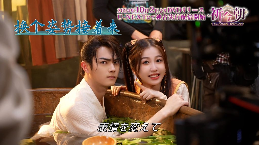 公開された映像は、越今朝(えつきんちょう/シュー・カイ)が沐浴しているところを、無邪気に近づき、越今朝ののどぼとけを触りながら「のどが乾いた?」と可愛く聞いてくる越祈(えつき/ユー・シューシン)にときめくシーンのメイキング。