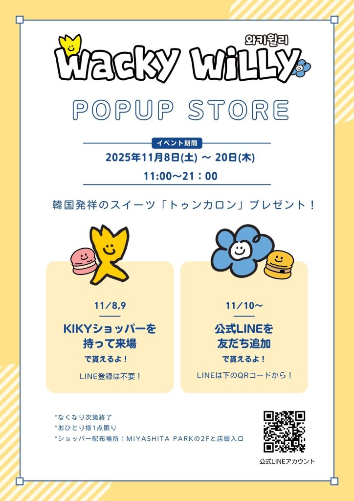 株式会社MXN JAPAN(本社:東京都品川区、代表取締役:崔 瀚友)がマーケティングを代行する、ブランド「Wacky WiLLy(ワッキーウィリー)」が日本初の単独上陸を記念して、MIYASHITA PARK にて期間限定ポップアップストアを開催する。