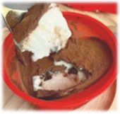 ココアパウダー、チョコレート、チーズ風味のアイス、クランチ入りコーヒーシロップの層構造で、本格的なティラミスの味わいを表現。なめらかなチーズ風味のアイスに、チョコレートとクランチが混ざり合い、食感のアクセントになっている。さらに、ココアパウダーとコーヒーシロップのほろ苦さが調和し、一口食べると、さまざまな食感と味わいのハーモニーが口の中に広がる。